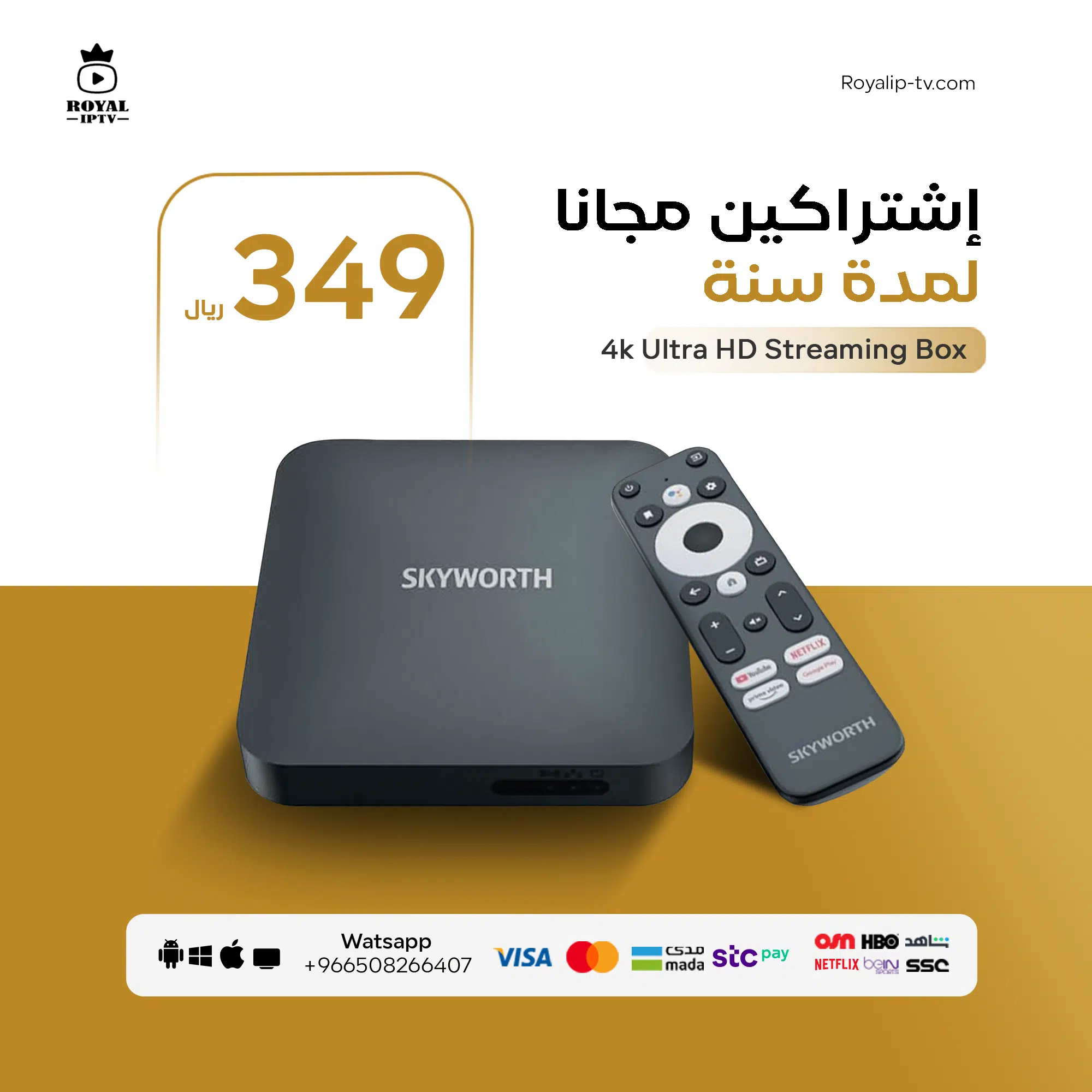 • رسيفر سكاي وورث: يتميز بأدائه القوي ودعمه للبث بجودة 4K مع واجهة تشغيل متقدمة. يوفر تجربة سلسة لمشاهدة القنوات الرياضية المشفرة والمفتوحة، ويأتي مع اشتراكات مجانية من متجر رويال.